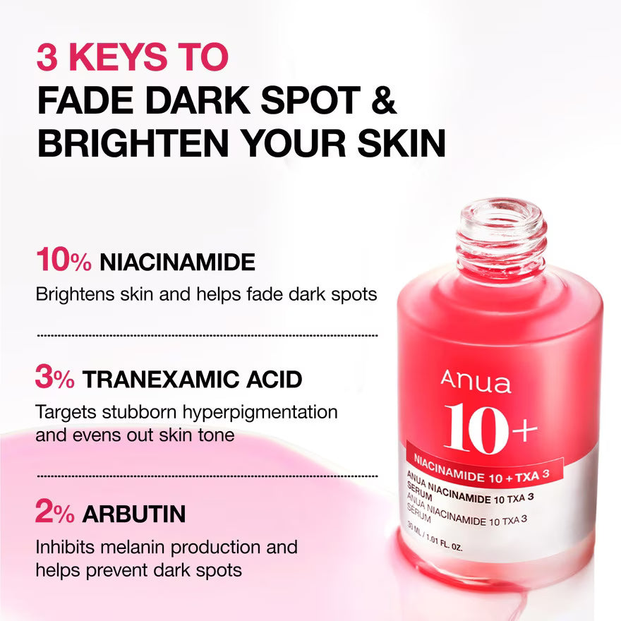 Formulated with gentle ingredients, Anua serum effectively diminishes dark spots and evens skin tone. Enhanced with Ceramides and Hyaluronic Acid to protect the skin barrier, soothe, and hydrate, it promotes a smoother, radiant complexion.