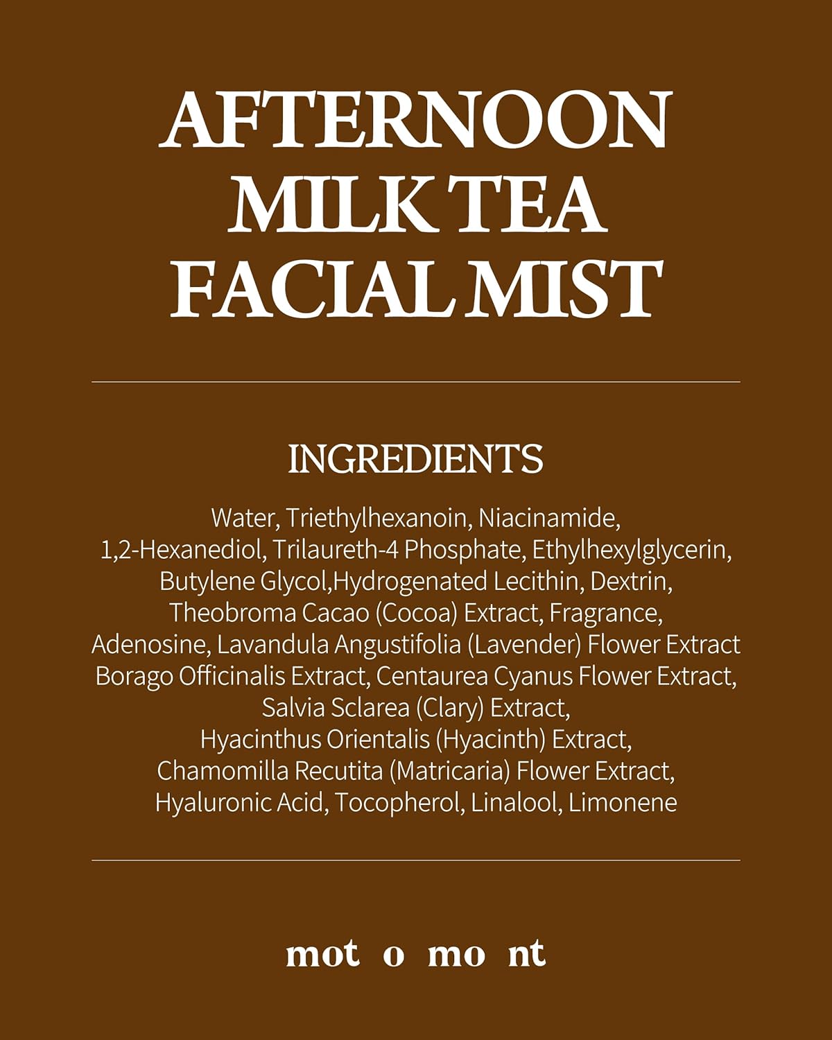 • SMELLS LIKE A MOOD-LIFTING AFTERNOON DREAM. It’s soft, subtle, and completely addictive—like your favorite milk tea with a twist. Fresh notes of Citrus, Green Apple, and Mint open the scent, while floral hints of Lilac, Rose, and Violet linger like a secret. Our refreshing face mist is the kind of scent that makes you pause, smile, and think, “I needed that”.