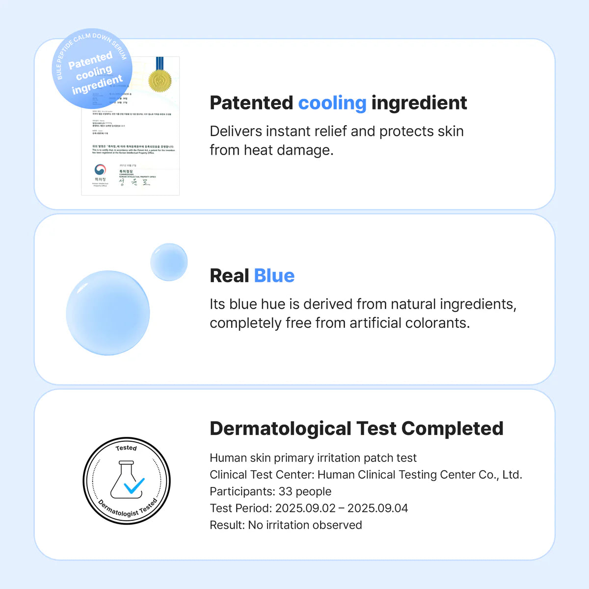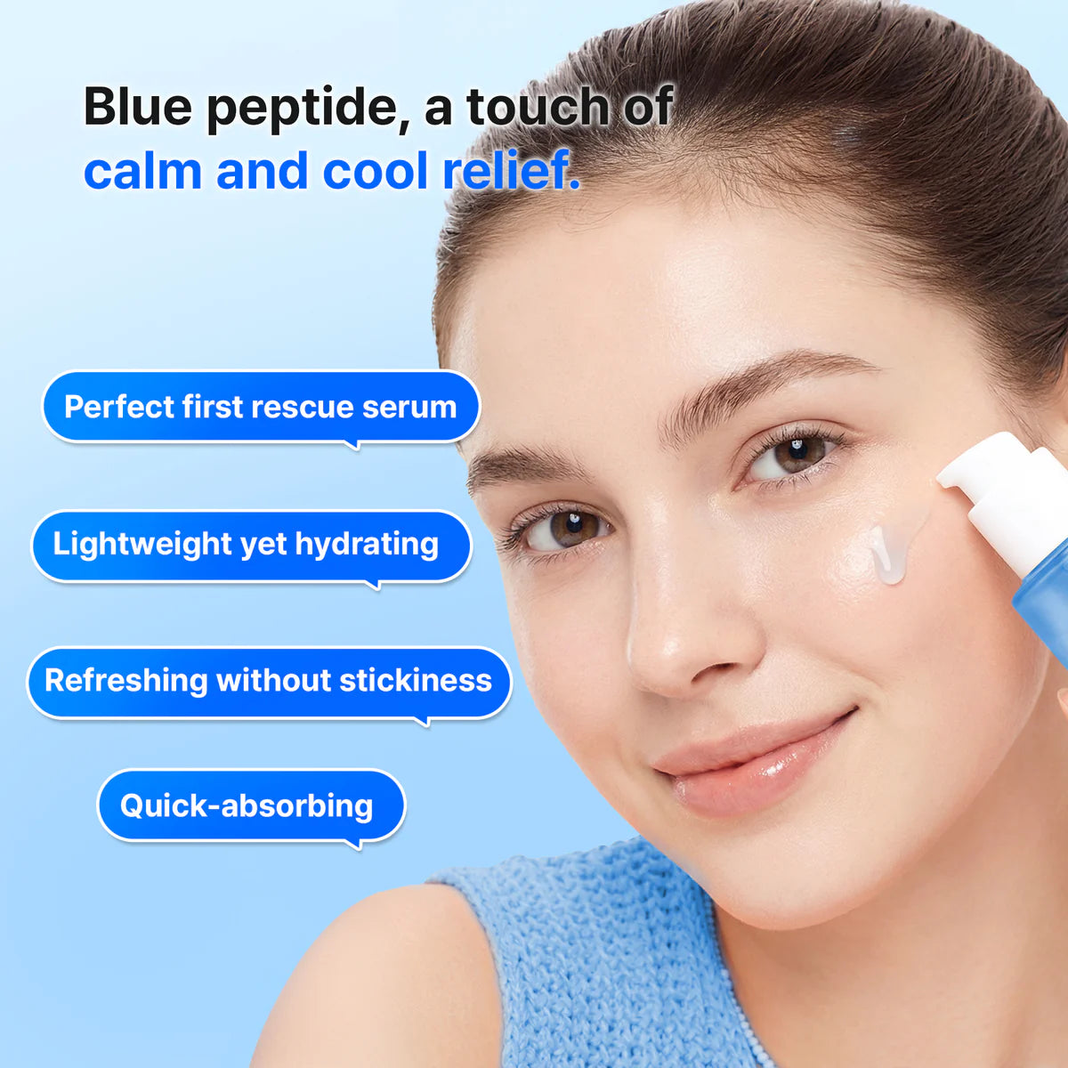 A blue calming first serum that cools and soothes heat-induced sensitivity.