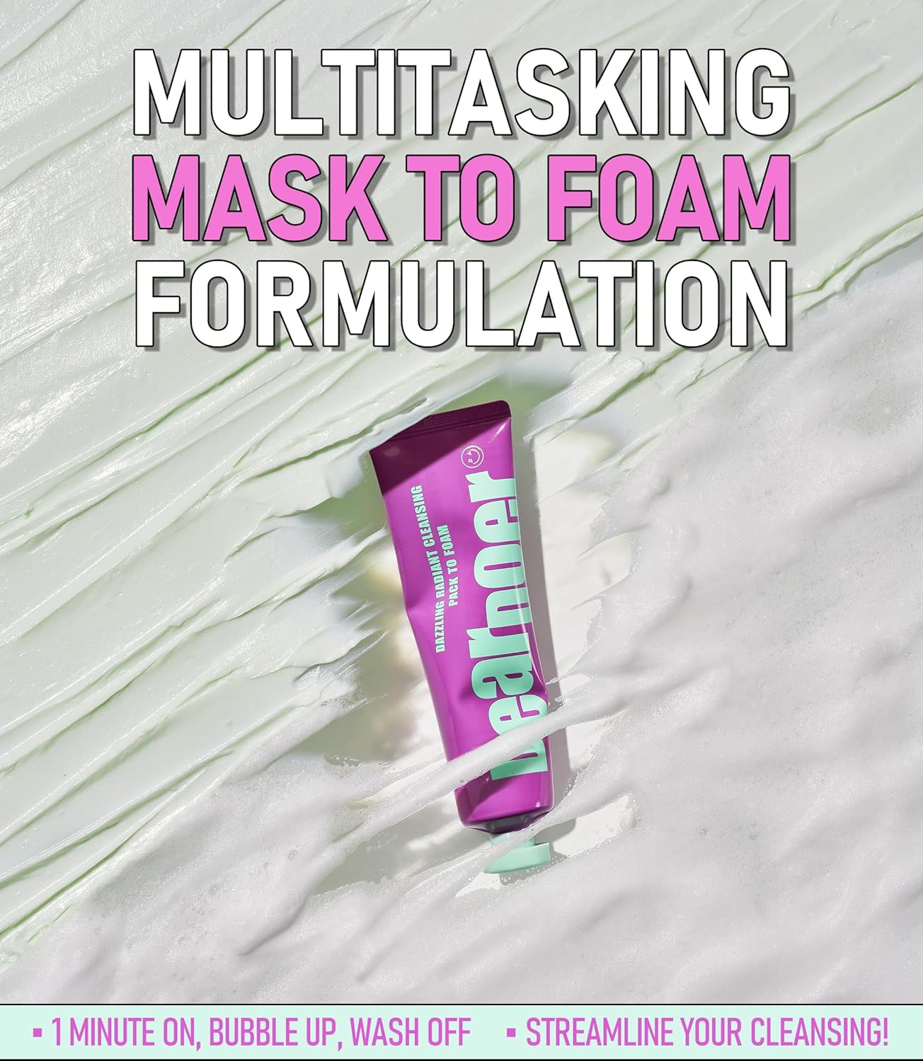 3-IN-1 DO-IT-ALL FORMULA: Your one-stop pore cleansing mask, exfoliator, and cleanser is here! Apply a generous amount to dry skin and leave it on for 1 minute. Gently massage in circular motions, then add water to create a rich lather. Rinse thoroughly. Finish your cleanse with one versatile formula!