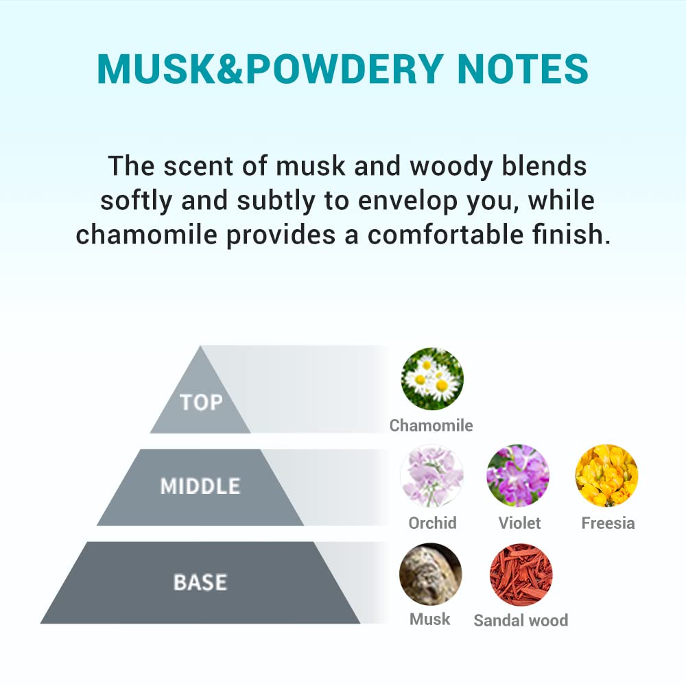 GENTLE WOODY SCENT: Delivers a warm, comforting finish with musk and sandalwood base notes, orchid, violet, and freesia middle notes, and a soothing chamomile top note for a relaxing aroma.
