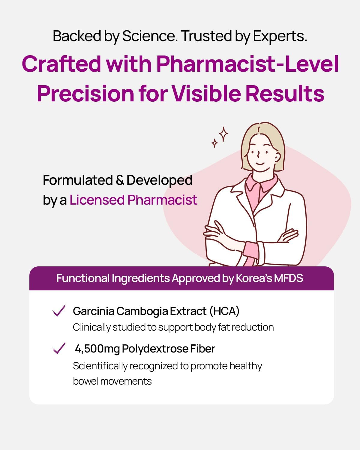 Polydextrose, Garcinia cambogia extract, Purified water, Red grape concentrate, Fructooligosaccharide, Chia seed, L-carnitine tartrate complex (L-carnitine tartrate, glucose, maltodextrin),Citric acid, Grape flavor (flavoring), Lactulose, Xylitol, Isomaltulose, D-sorbitol, Carrageenan complex (carrageenan, calcium lactate), B-isomaltodextrin, Sodium citrate, Stevia extract, Sucralose (sweetener),Vegetable mixed green powder, Elastin extract powder, Fish collagen, Hyaluronic acid complex (dextrin, hyaluronic acid), Milk protein powder*Contains milk, wheat, tomato