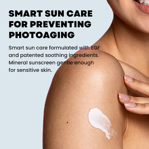 A low-irritation mineral sunscreen formulated with EGF and patented soothing ingredients to help protect skin from photoaging.