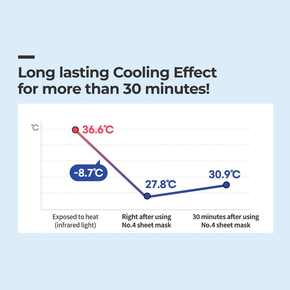 - This sheet mask provides an immediate cooling effect, reducing skin temperature without the use of alcohol or menthol. It's perfect for soothing heated and irritated skin.