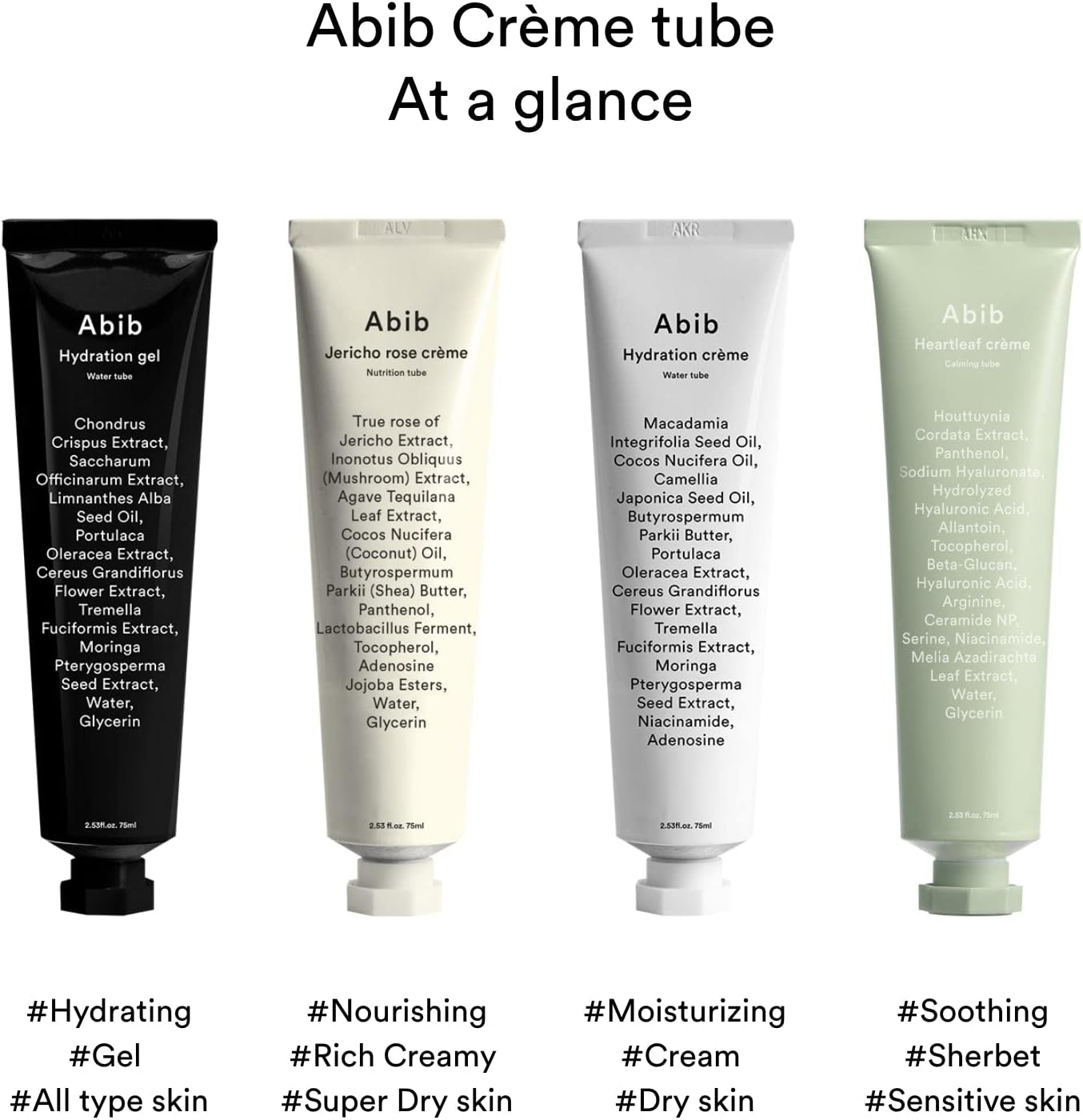 The Abib Hydration Creme Water Tube is a deeply hydrating moisturizer that is packed with nourishing oils to relieve dryness, restoring softness and suppleness to skin! Also possesses skin-brightening and anti-wrinkle benefits. This moisturizer is formulated without fragrances.