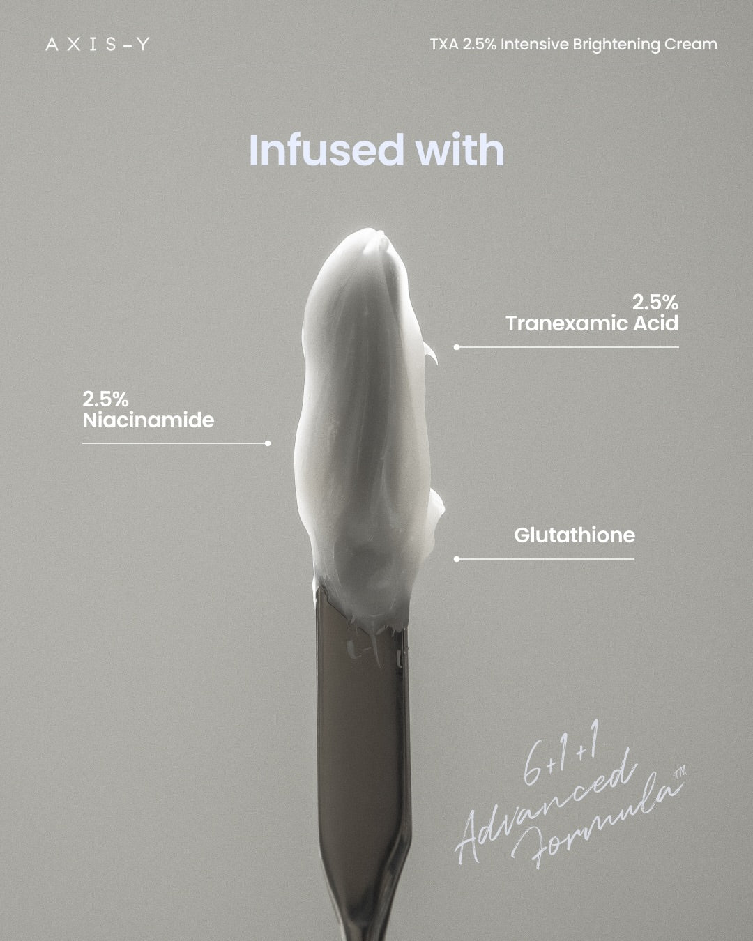- The powerful blend of Tranexamic Acid, Niacinamide and Glutathione fade dark spots, brighten skin tone and strengthen skin barrier.