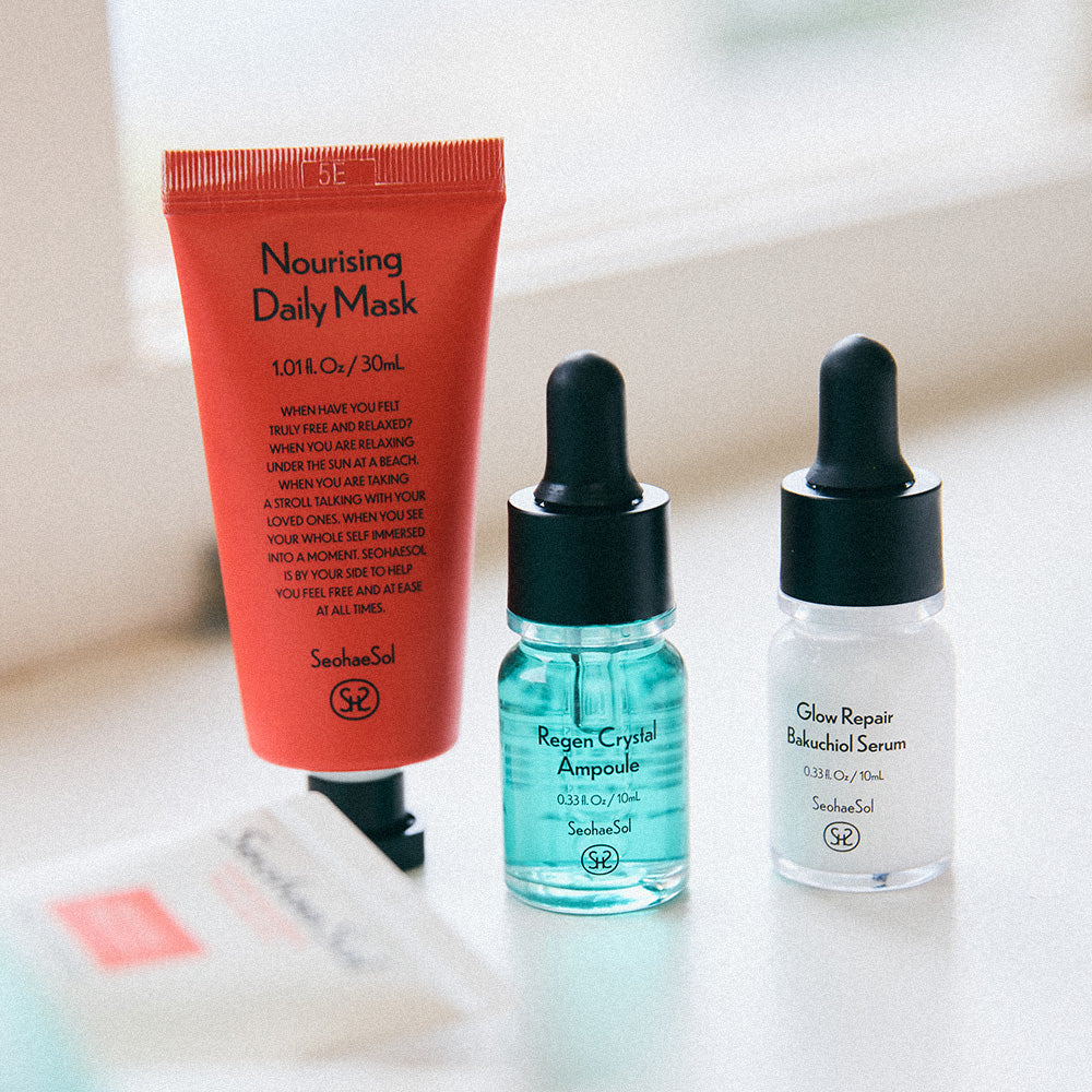 **Bakuchiol: A plant-based retinol alternative that can be used on sensitive skin without irritation. Unlike retinol, it does not react to UV rays, making it safe for daytime use.