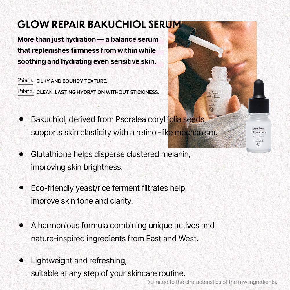 -Bakuchiol, extracted from the seeds of Psoralea corylifolia, helps restore skin elasticity.