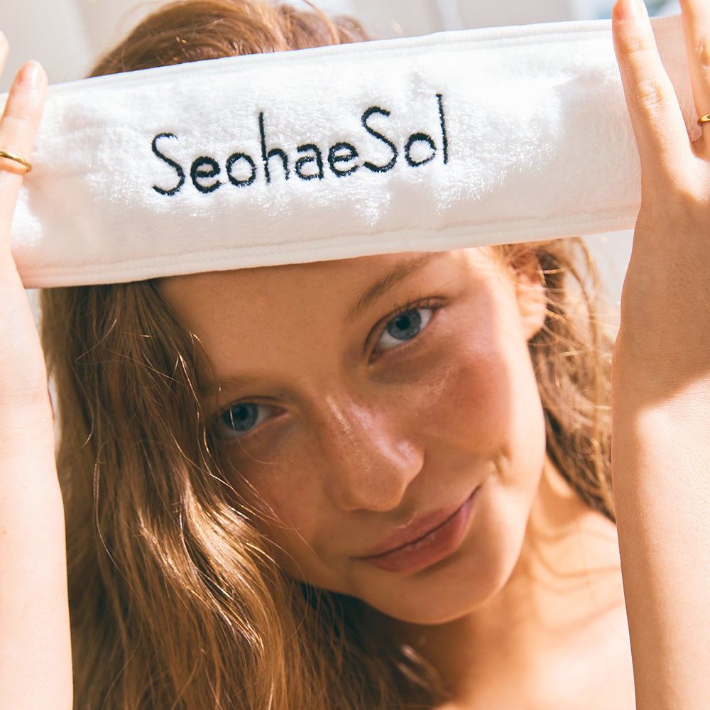 -A face-washing headband made of terry fabric for easy washing and drying.
