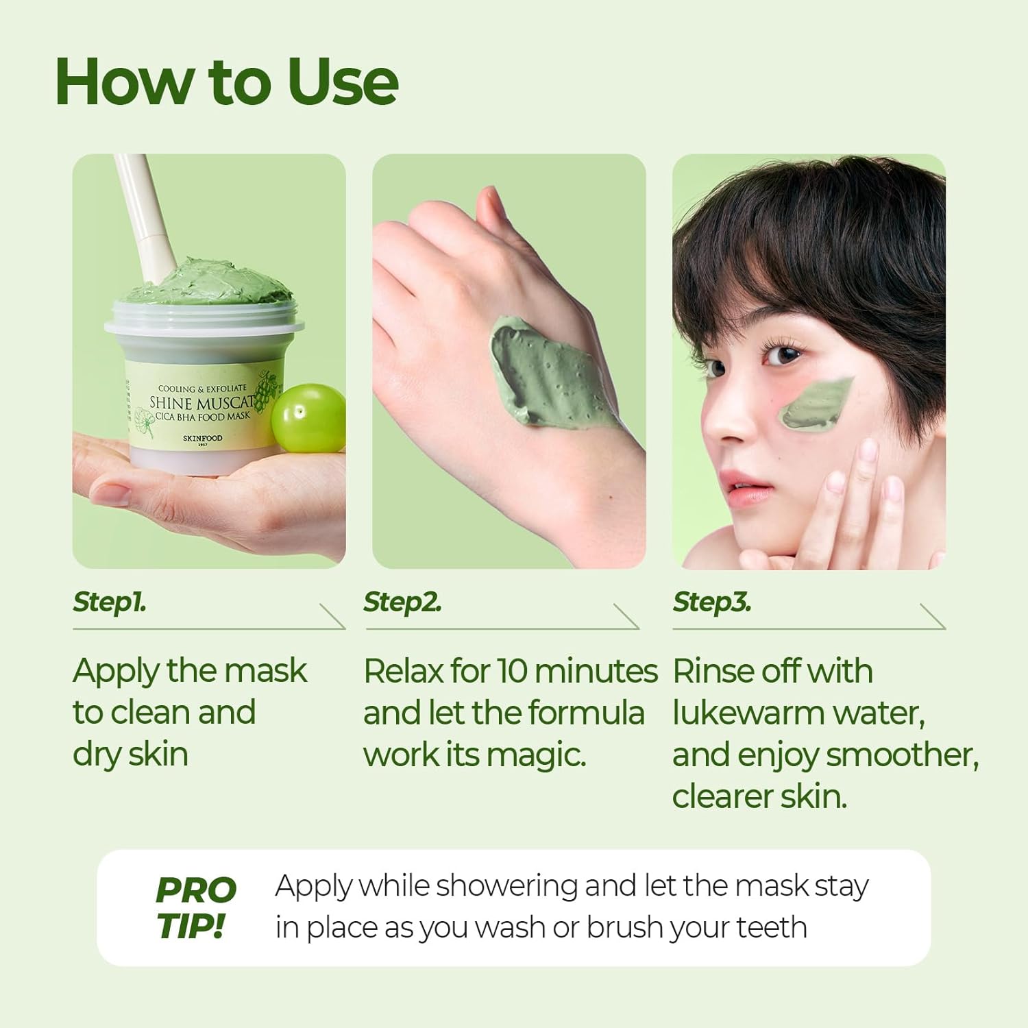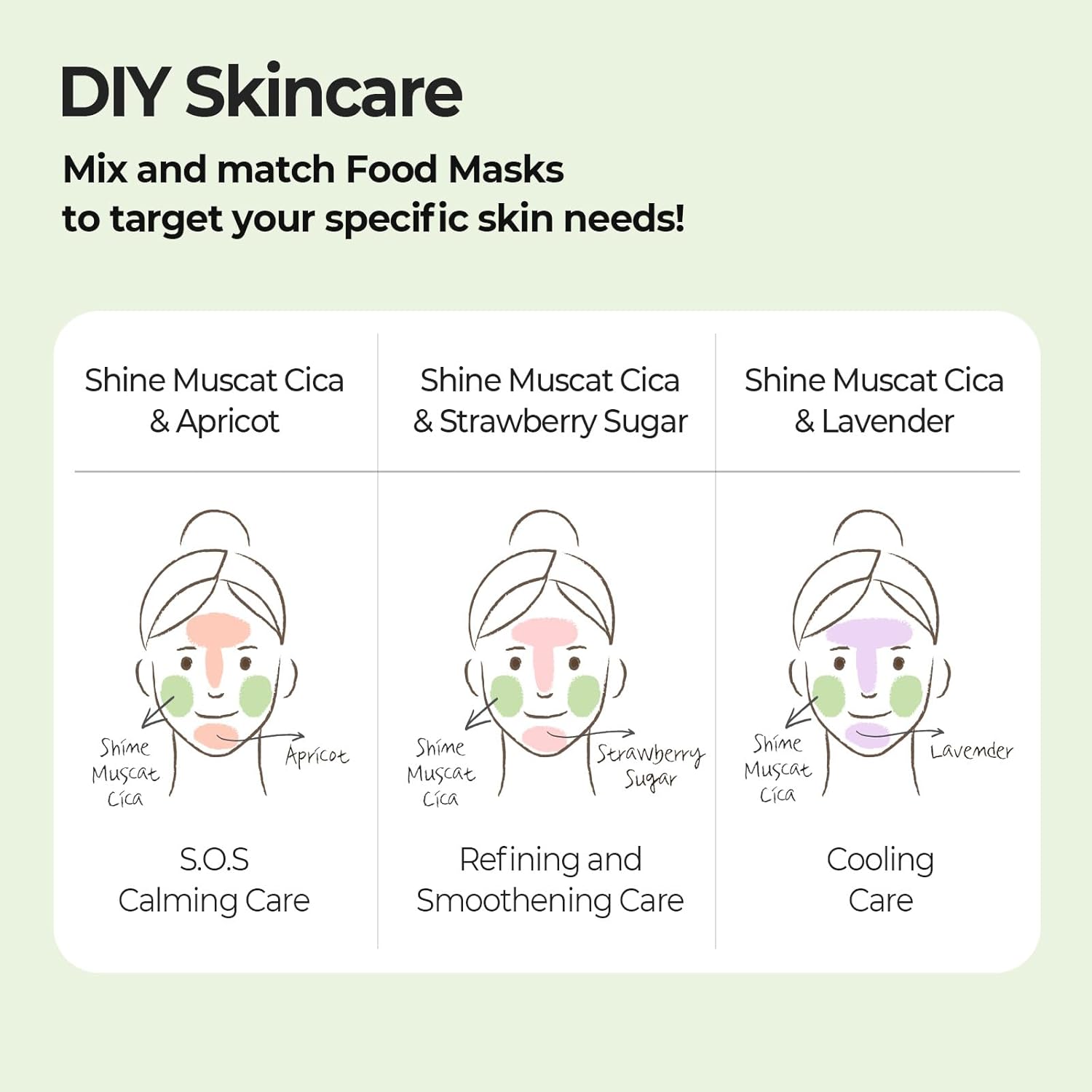 A food mask infused with Shine Muscat, which is rich in resveratrol and vitamins C, K, and B6 to help with excellent cleansing and soothing properties.
