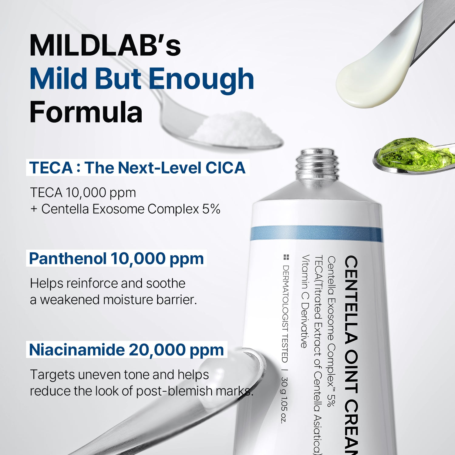 MILDLAB Centella Oint Cream is a moisturizing cream designed to calm irritated skin, strengthen the skin barrier, and support visible skin recovery.