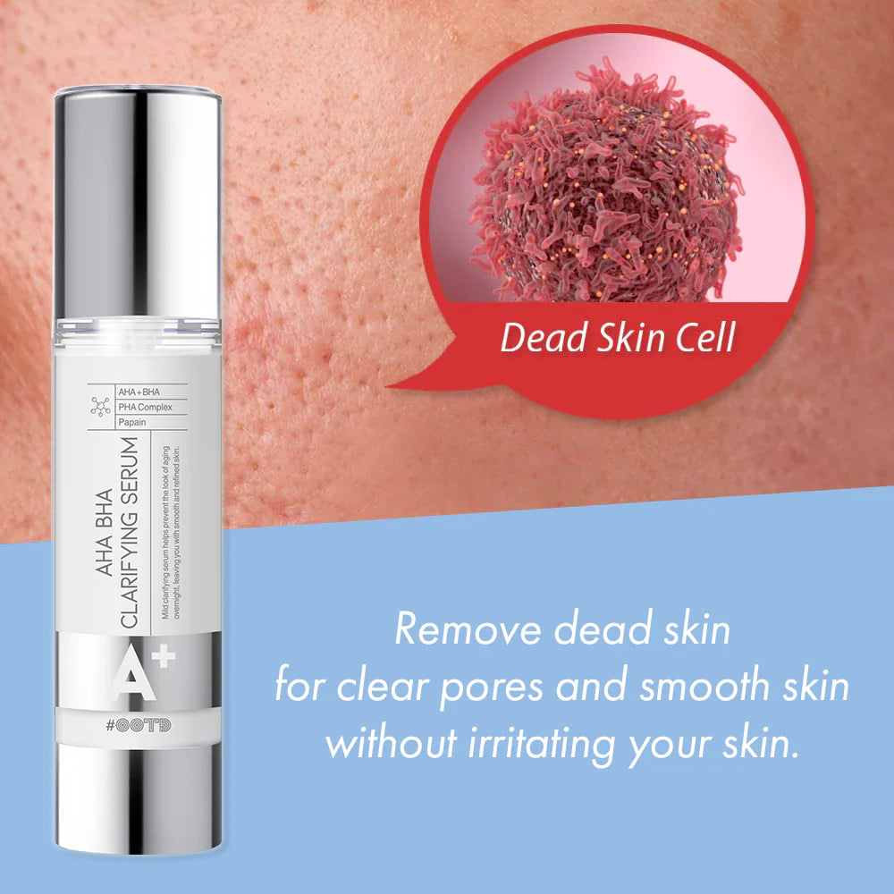 - BHA (salicylic Acid) : treats acne by reducing swelling and redness and unplugging blocked skin pores to allow pimples to shrink by softening and loosening dry, scaly, thickened skin