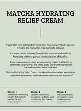 - Matcha Hydrating Relief Cream contains three important ingredients that fill the foundation of the skin with moisture and elasticity.